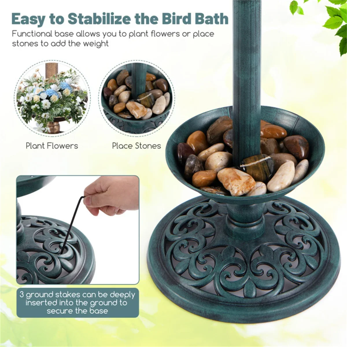 Vintage Charm Meets Easy Assembly: Featuring exquisite carvings and a retro bronze finish, the freestanding bird feeder adds a touch of vintage elegance to your garden, patio, or backyard. In addition, the simple structure of the birdbath allows for easy assembly without the need for tools.