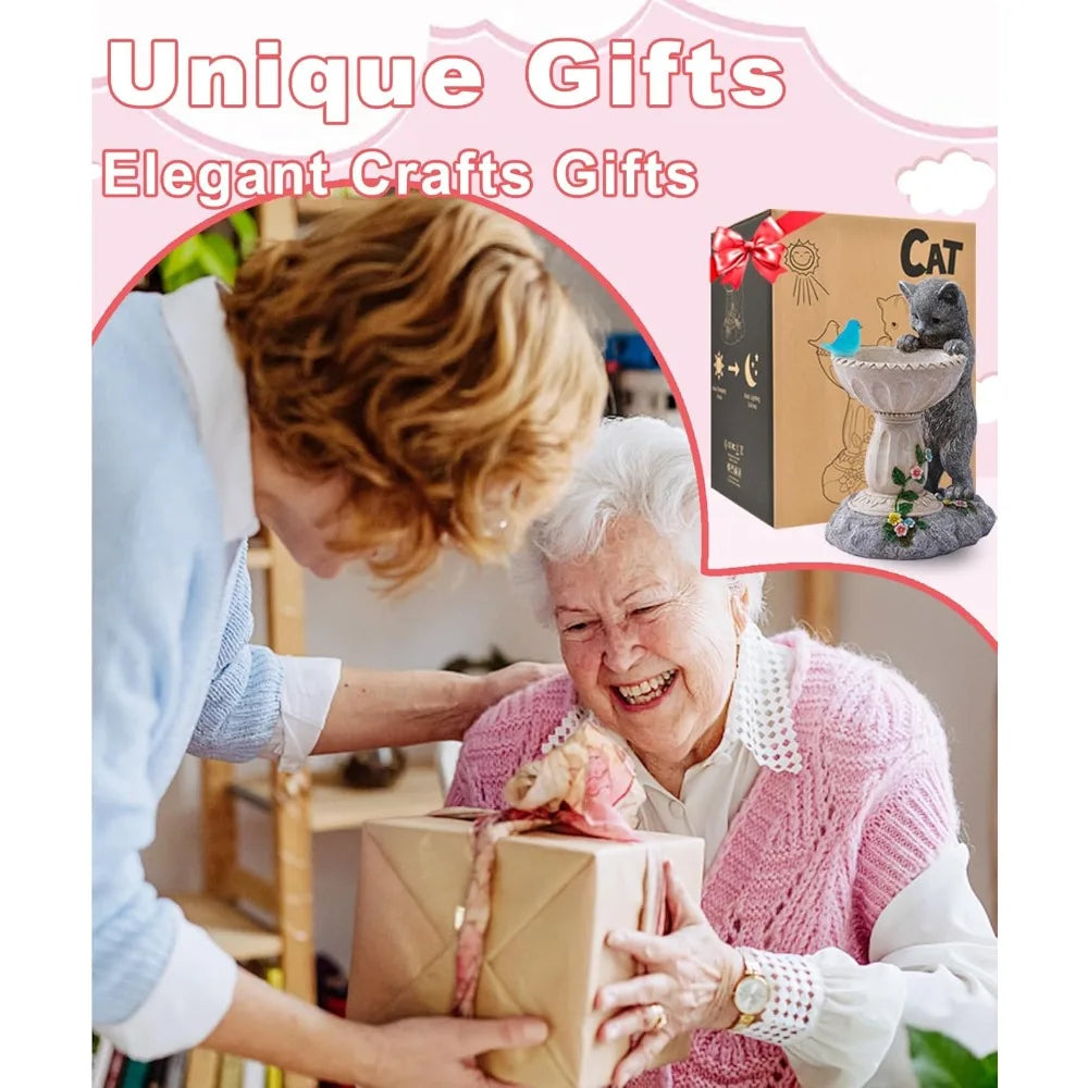 Solar Cat Statues for Bird Bath: Outdoor Sculptures for Garden Lawn Patio Yard Balcony Porch - Unique Gifts for Mother Grandma Women