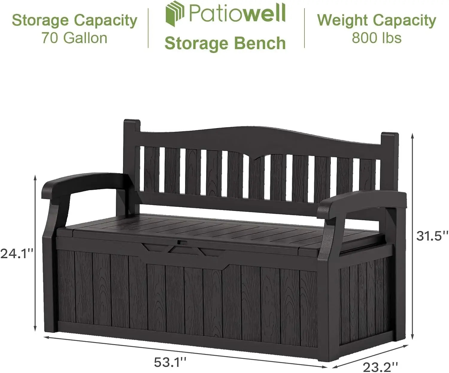 Spacious Storage Capacity: With a generous 70-gallon capacity, this bench offers ample space to store garden tools, outdoor cushions, pool accessories, and more. Keep your outdoor essentials neatly organized and easily accessible.